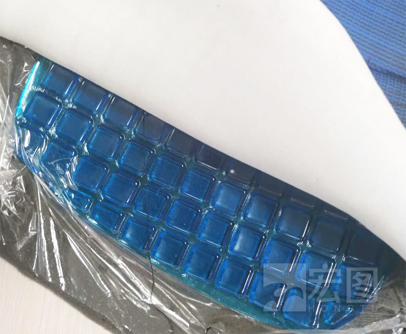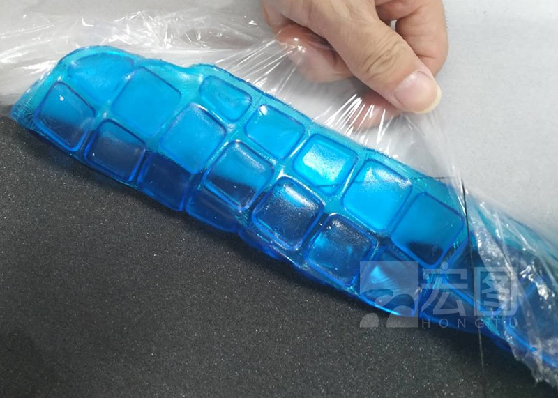客戶坐墊模具,然后將1:1配比混合攪拌抽真空后液體硅凝膠倒入模具中,讓其加溫或者自然成型,在倒入硅凝膠前需要加入一張薄膜,硅膠硫化后表面也需要加入薄膜防止硅凝膠與海綿或者其他物質發(fā)生吸附。硫化后硅凝膠非常柔軟,手感類似果凍。